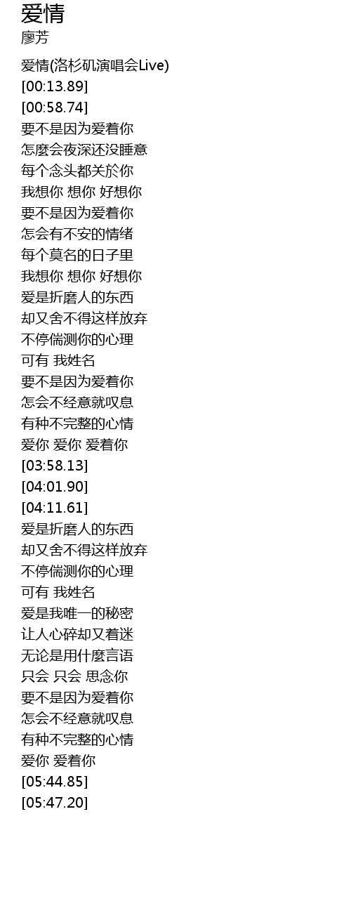 | [00:05.53] | 爱情(洛杉矶演唱会Live) |