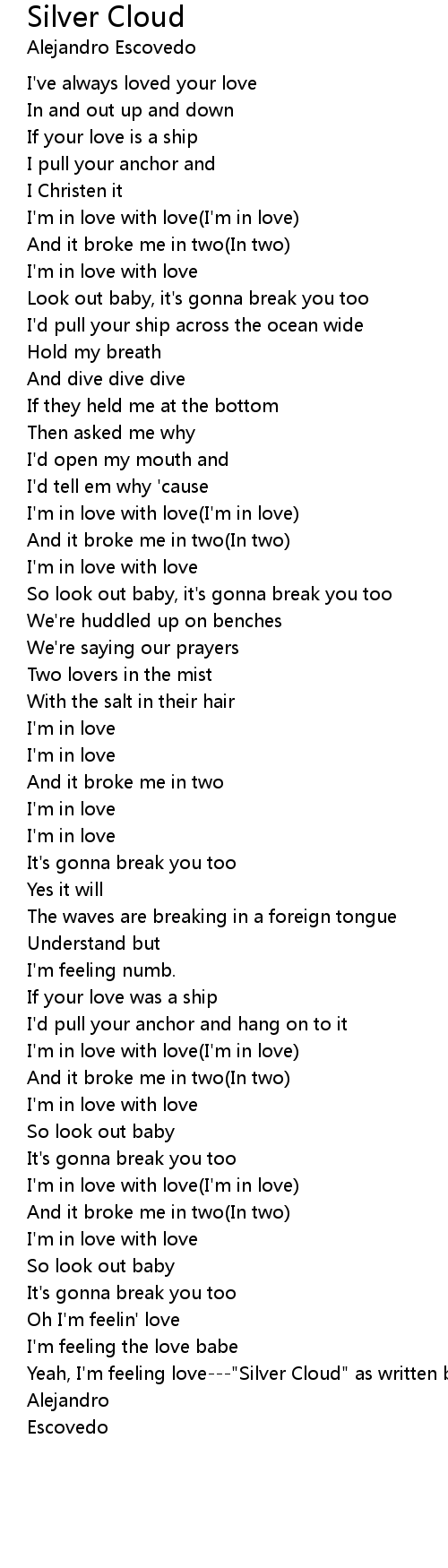 Yeah, I'm feeling love---"Silver Cloud" as written by |