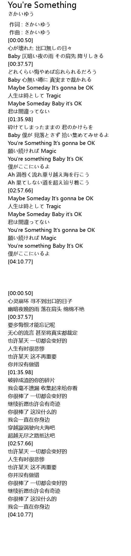 | [03:43.89] | You' re Something It' s gonna be OK |