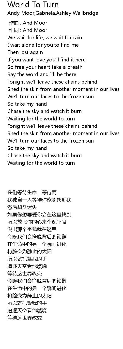| [03:59.110] | Waiting for the world to turn |