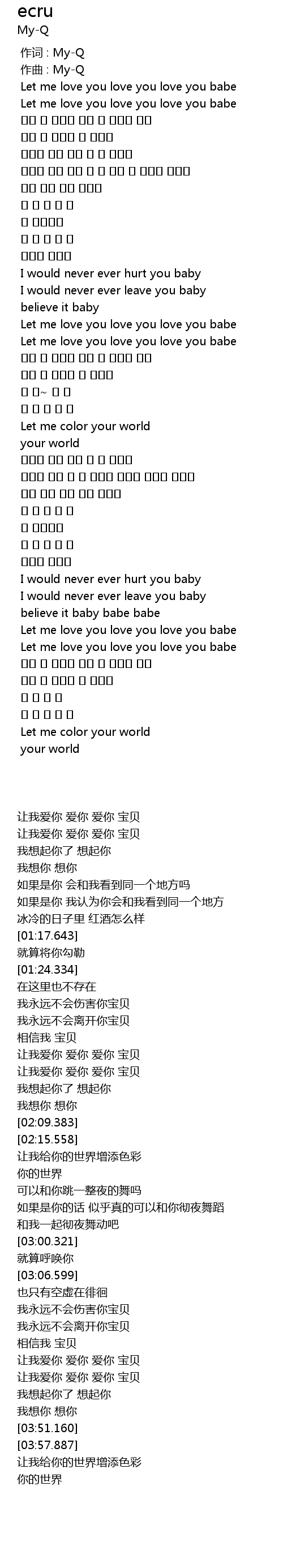 | [01:43.530] | 让我爱你 爱你 爱你 宝贝 |