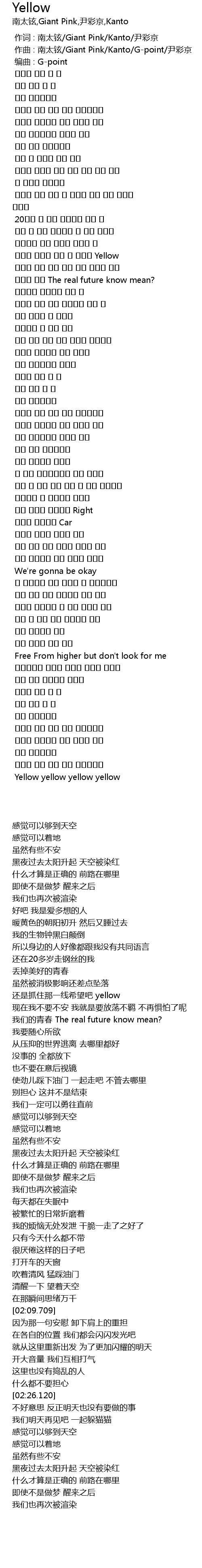 | [00:55.446] | 했지만 한줄기 빛이 날 잡아줘 Yellow |