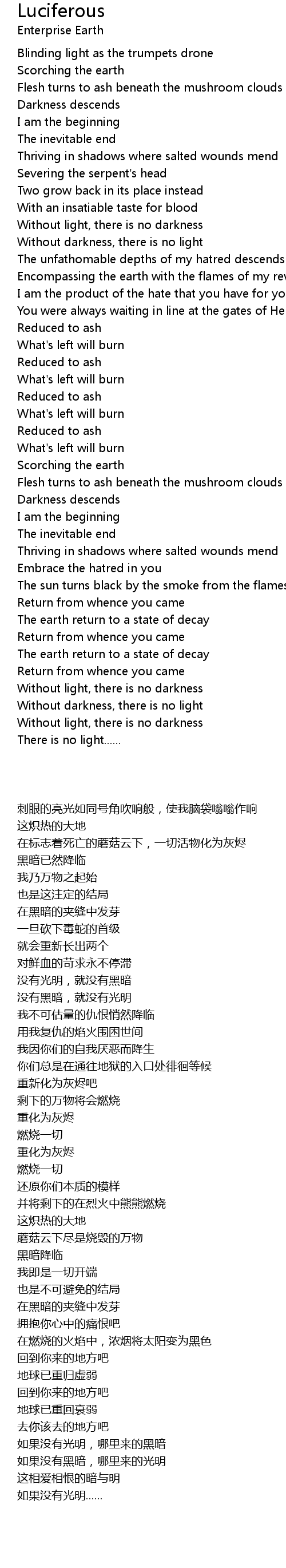 Encompassing the earth with the flames of my revenge |