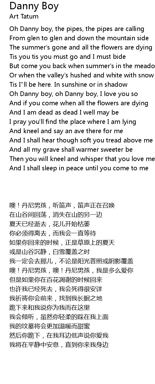 Oh Danny boy, oh Danny boy, I love you so |