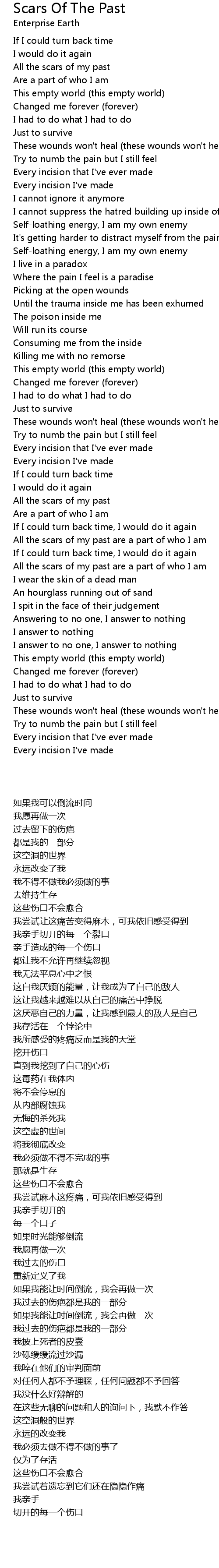 歌曲 Scars Of The Past