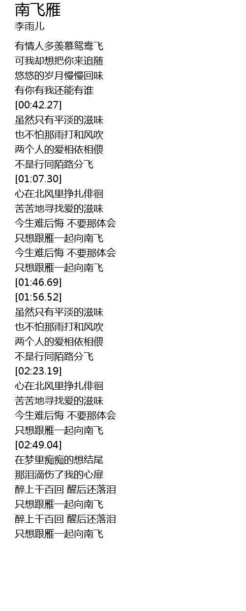 | [02:43.71] | 只想跟雁一起向南飞 |