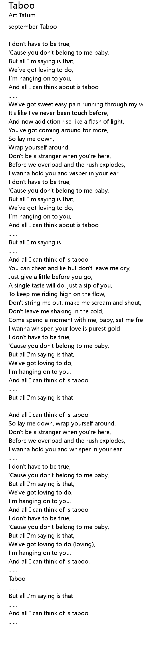And all I can think of is taboo, |