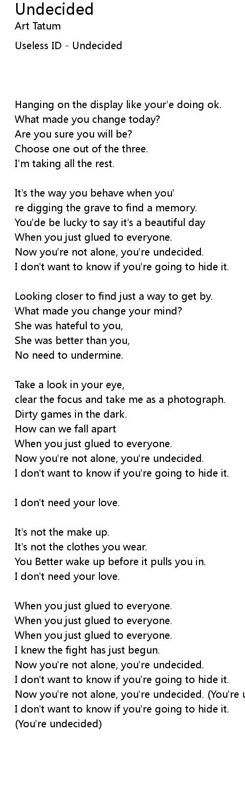 Now you're not alone, you're undecided. (You're undecided) |