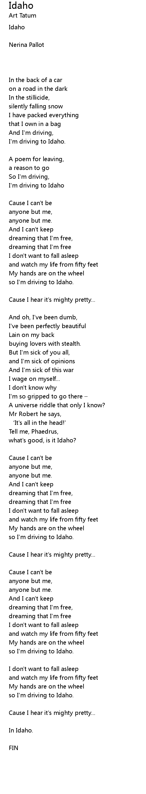 | 歌曲 | Idaho |