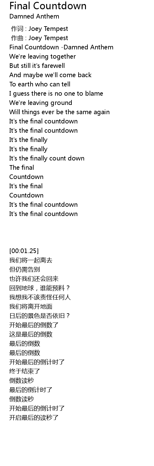 | [00:01.25] | Final Countdown Damned Anthem |