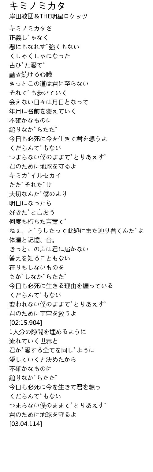 | [01:18.329] | キミガイルセカイ |