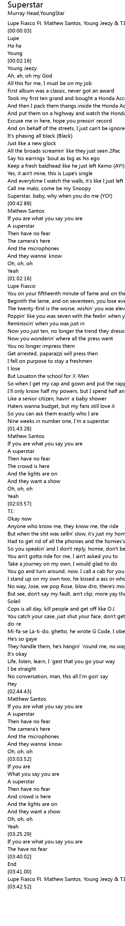 Lupe Fiasco Ft. Mathew Santos, Young Jeezy & T.I. - Superstar (Remix) |