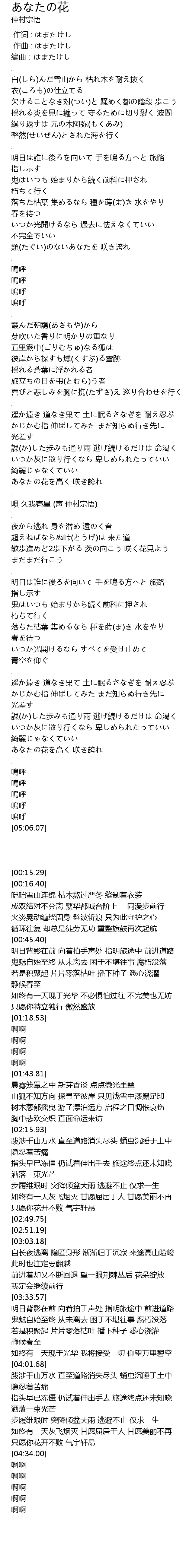 | [04:30.33] | あなたの花を高く 咲き誇れ |