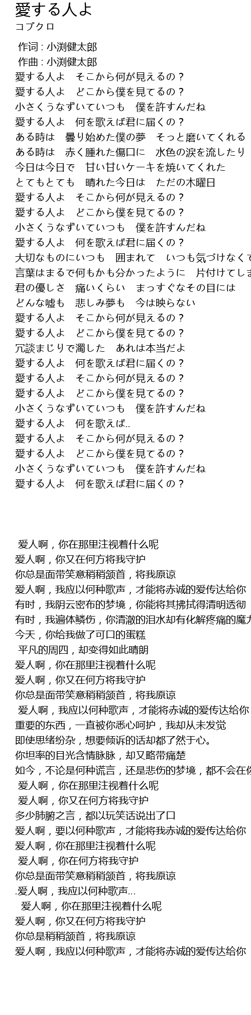| 歌曲 | 愛する人よ |