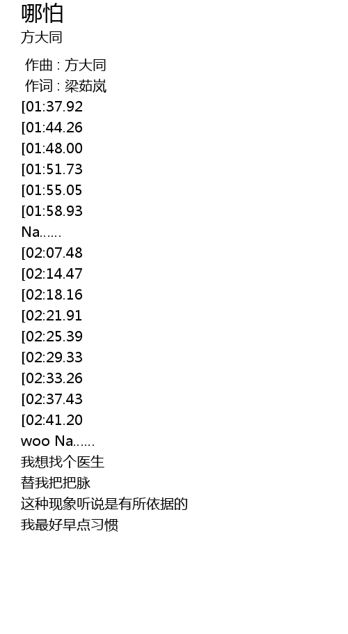 | [01:26.01][02:41.20][03:48.95] | nǎ pà nǐ jué de wǒ bù jìn rén qíng |