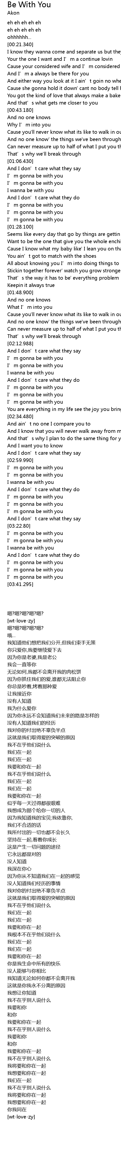 | [03:00.359] | I' m gonna be with you |