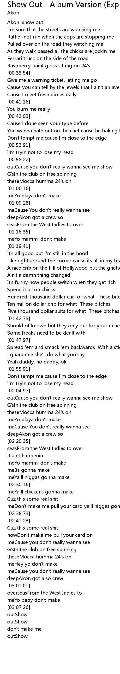 | [00:05.74] | Akon show out |