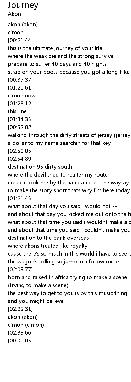 | [03:11.77][01:28.12][00:45.07] | just another journey, who ever thought i'd cross this line |