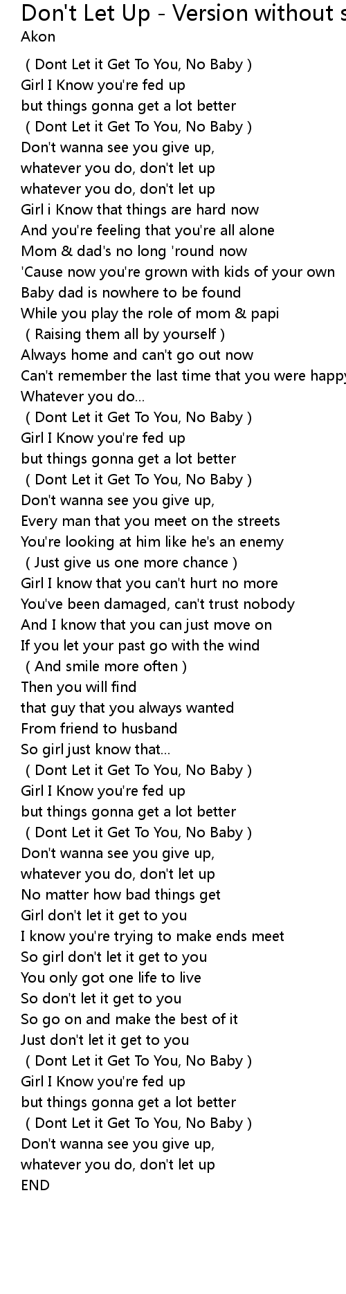 | [00:18.58] | (Dont Let it Get To You, No Baby) |