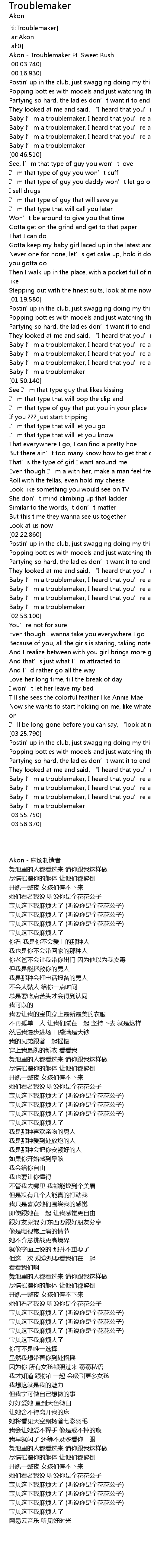 | [00:02.400] | Akon Troublemaker Ft. Sweet Rush |