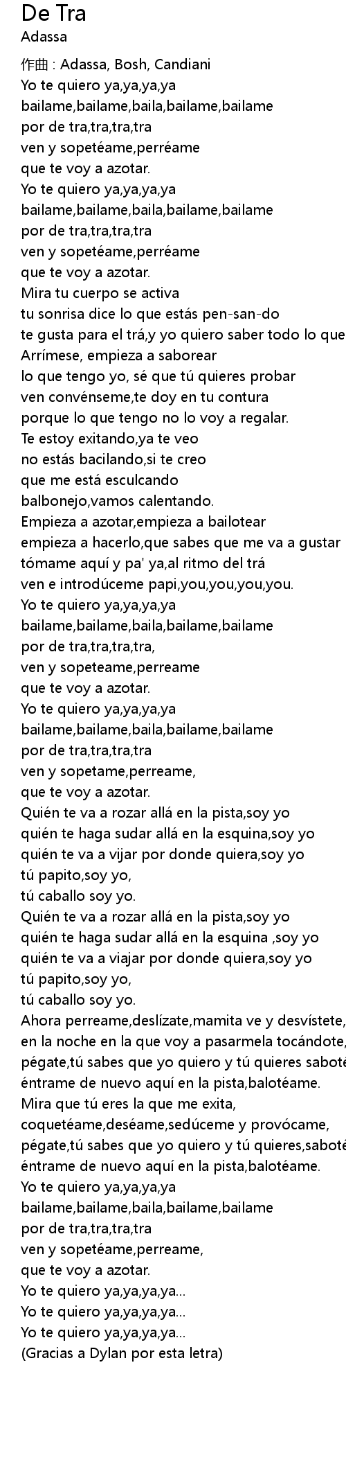 | Gracias a Dylan por esta letra |