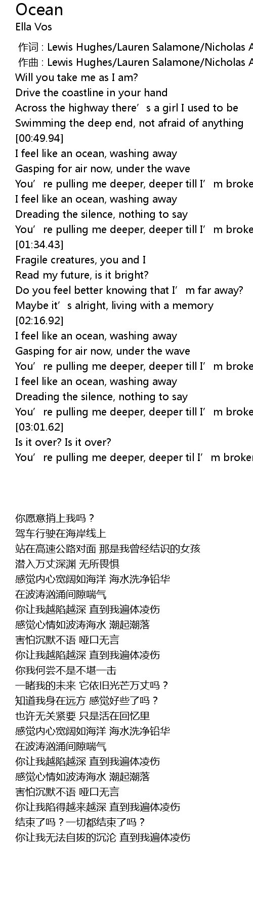 | [03:14.55] | You’re pulling me deeper, deeper til I’m broken |