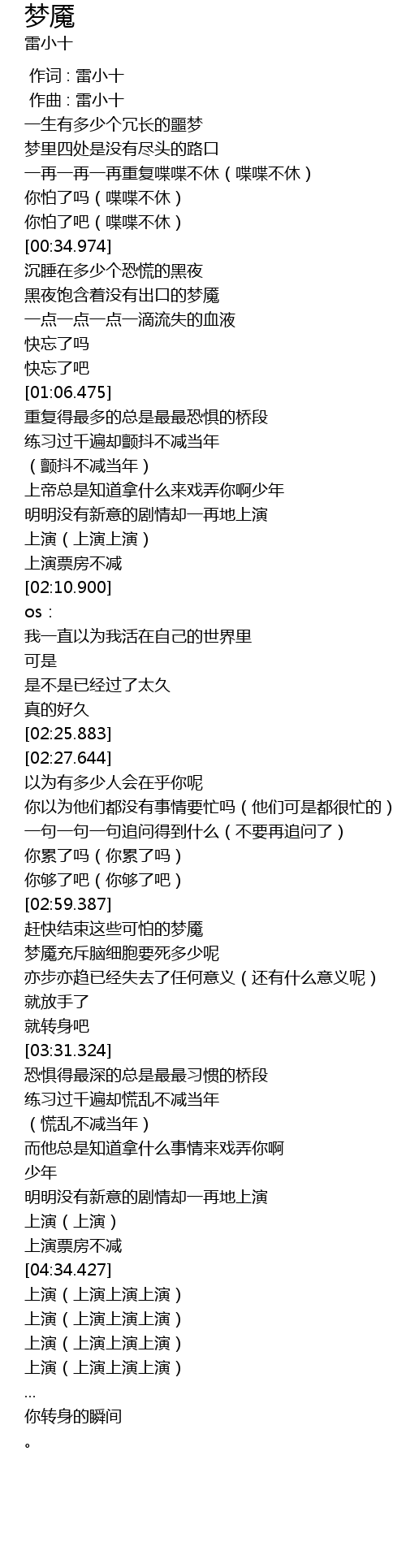 | [03:08.132] | 梦魇充斥脑细胞要死多少呢 |