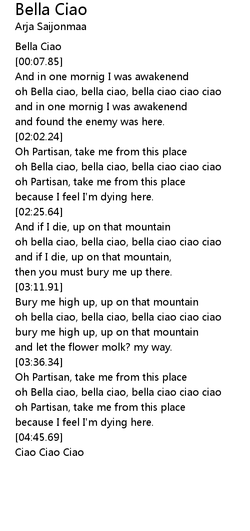 | [02:56.23] | oh bella ciao, bella ciao, bella ciao ciao ciao |