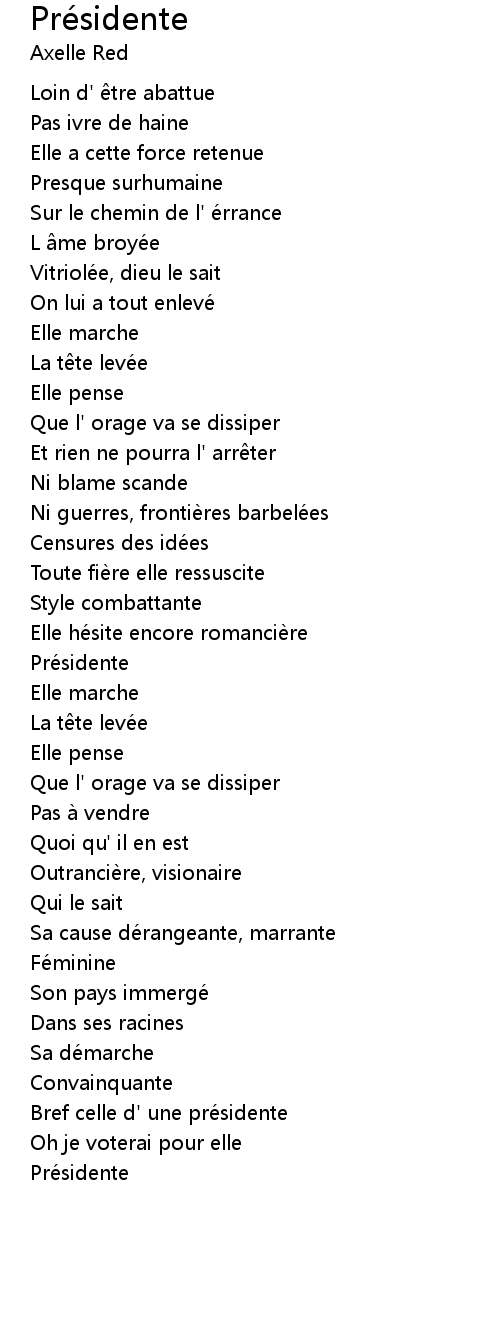 | 歌曲 | Présidente |