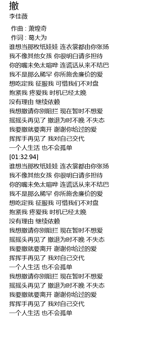 | [02:57.93] | 我想撤请你别阻拦 现在暂时不想爱 |