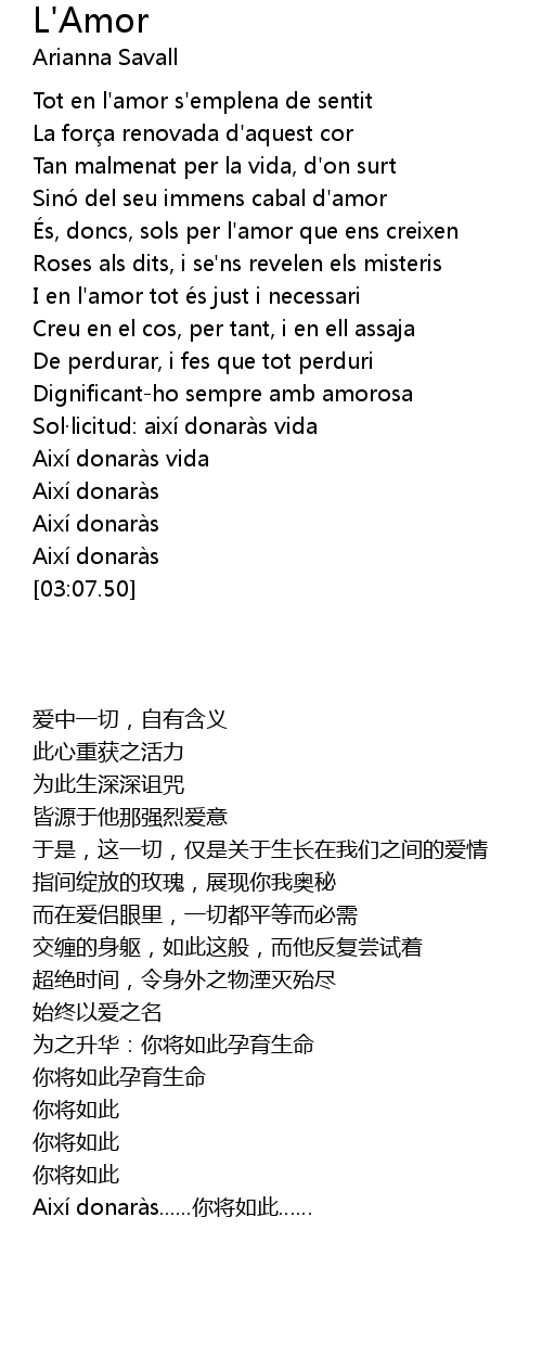| [00:51.00] | Tot en l'amor s'emplena de sentit |