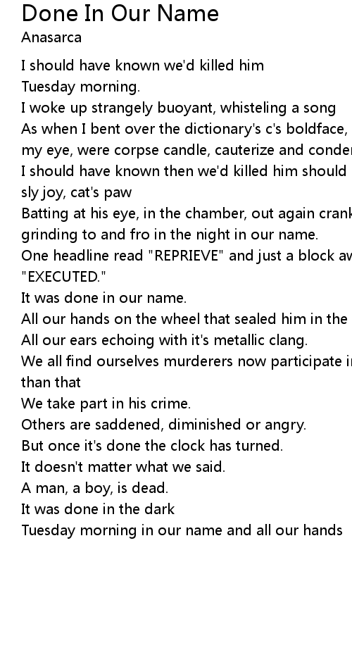 Batting at his eye, in the chamber, out again cranky machinery of revenge grinding to and fro in the night in our name.