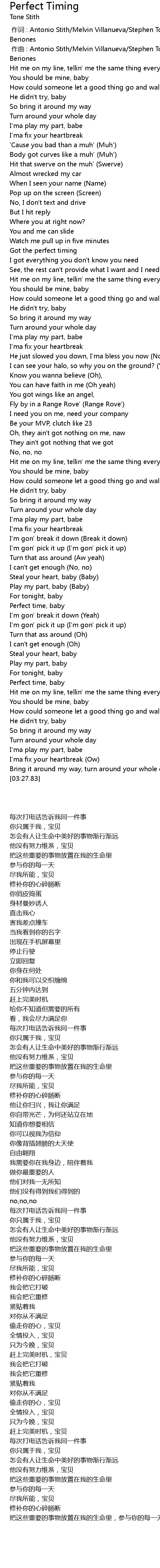 | 歌曲 | Perfect Timing |