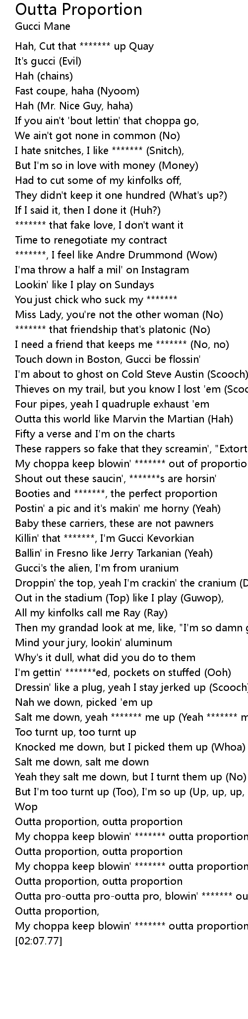 [02:05.35] My choppa keep blowin' ******* outta proportion