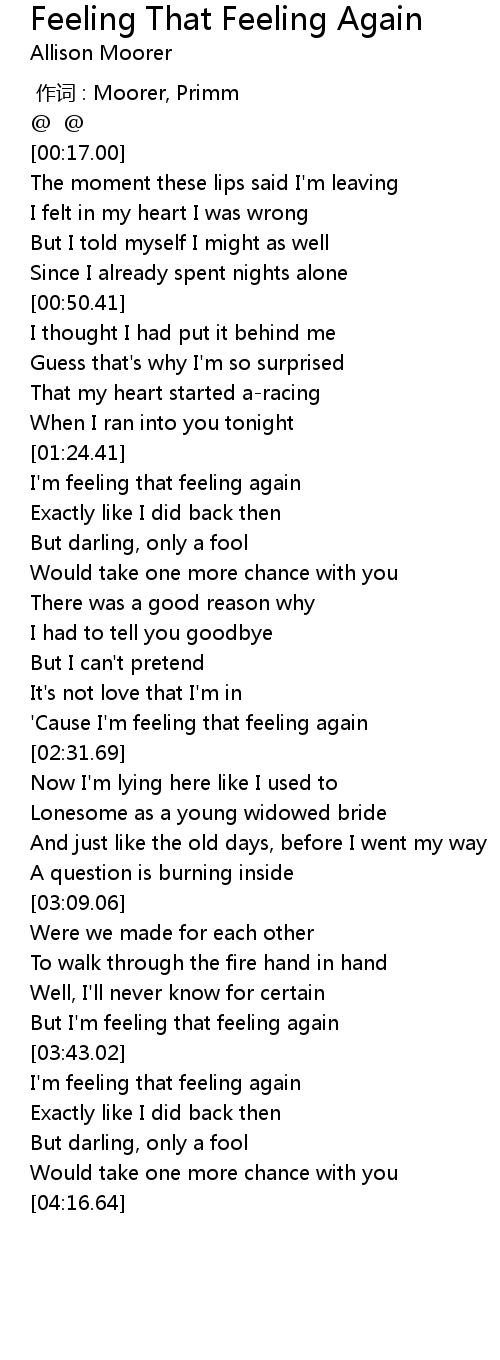 | [03:44.61] | I' m feeling that feeling again |