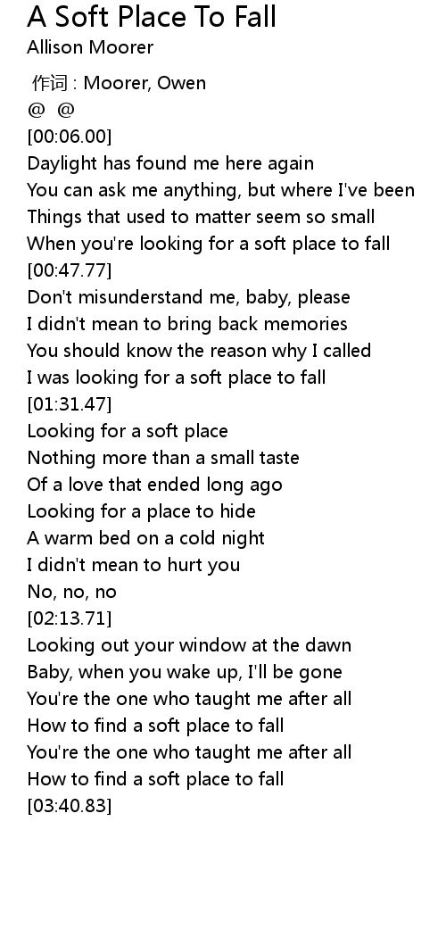 | [00:39.50] | When you' re looking for a soft place to fall |