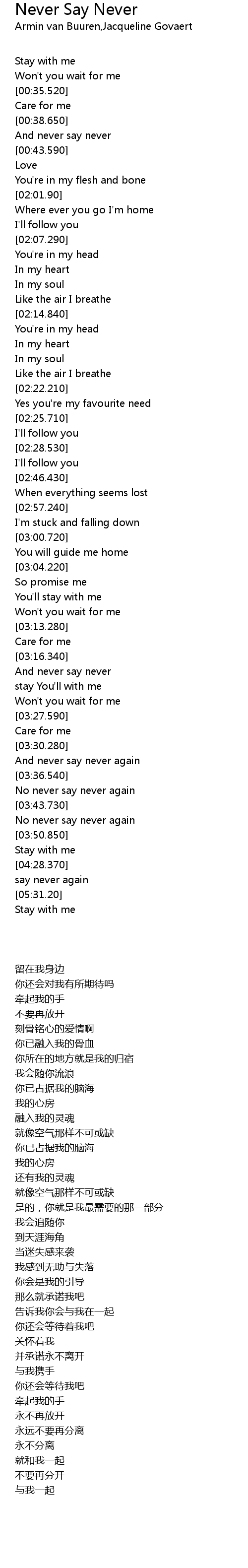 | [03:21.660] | stay You' ll with me |