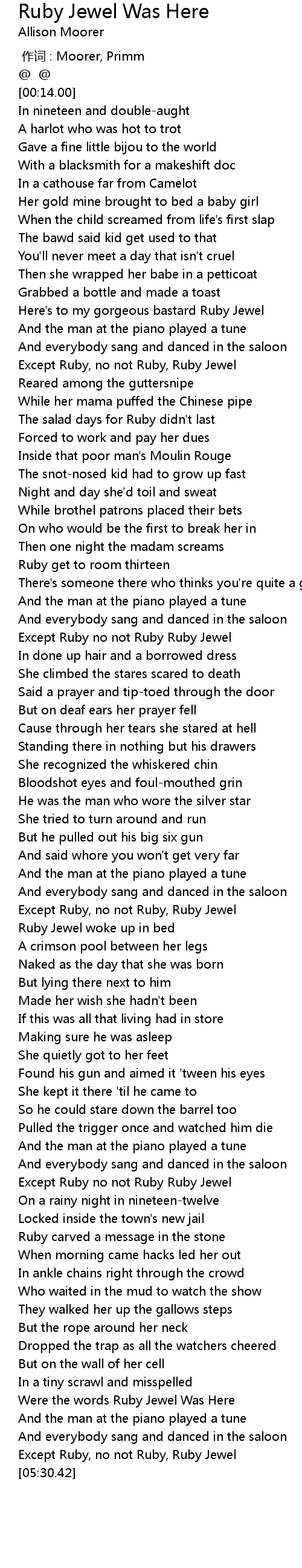 | [04:18.50] | Except Ruby no not Ruby Ruby Jewel |