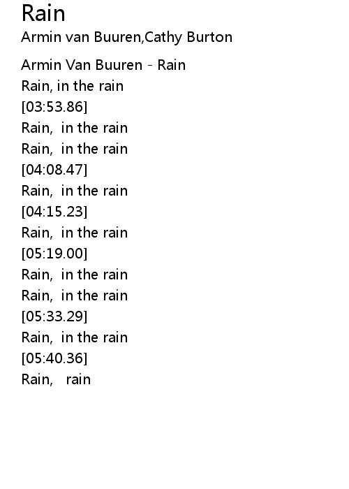 | [00:00.49] | Armin Van Buuren - Rain |