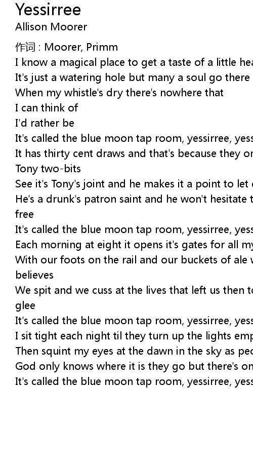 | It' s called the blue moon tap room, yessirree, yessirree |