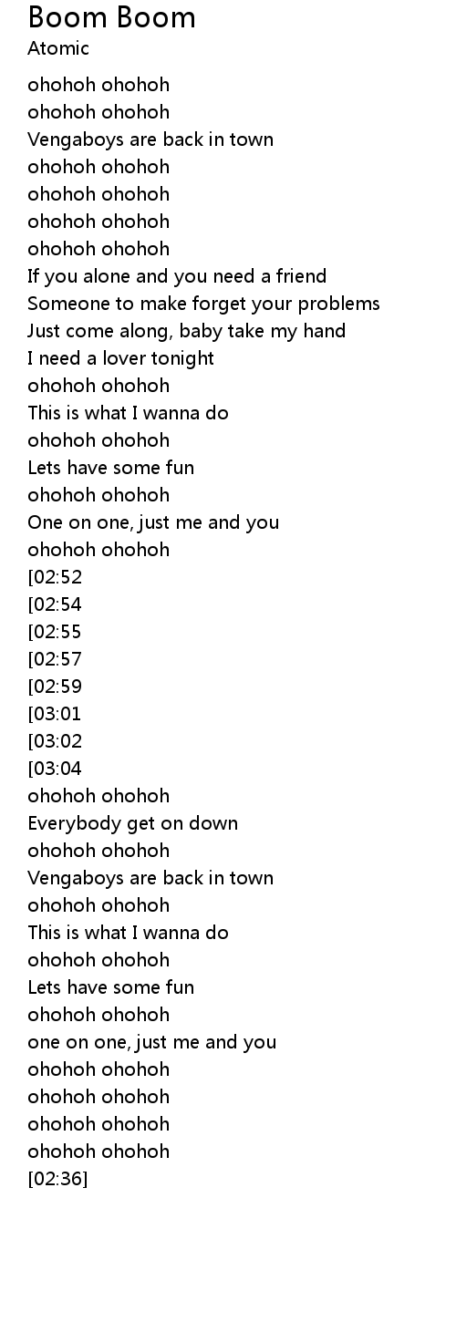 | [03:05][02:52][01:56][01:42][00:54] | Boom Boom Boom Boom!! |