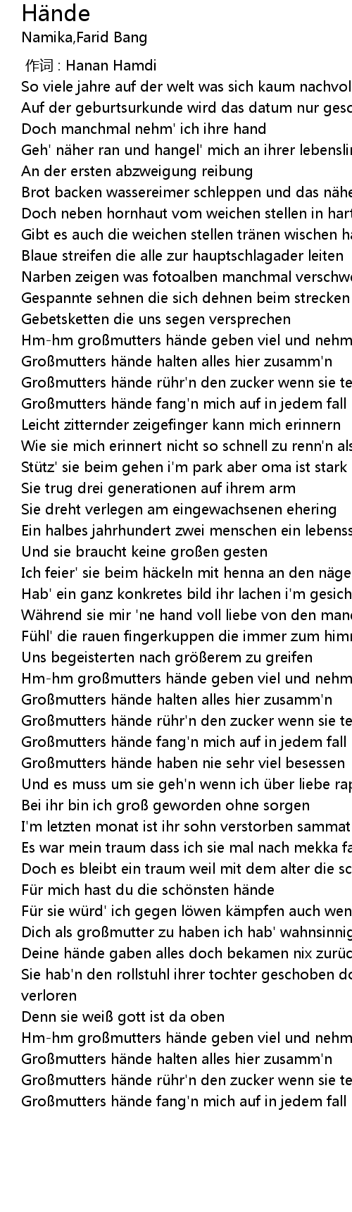 | [02:07.63] | Hm-hm großmutters hände geben viel und nehm'n so wenig |