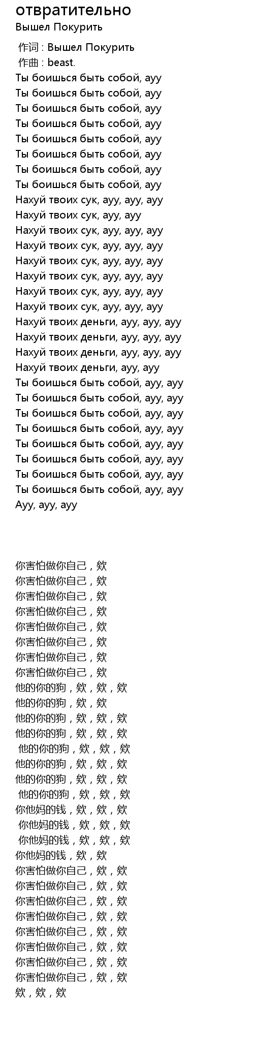 | [01:08.812] | Нахуй твоих сук, ayy, ayy, ayy |
