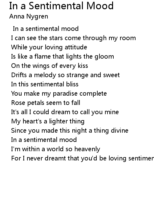 | In a sentimental mood | |