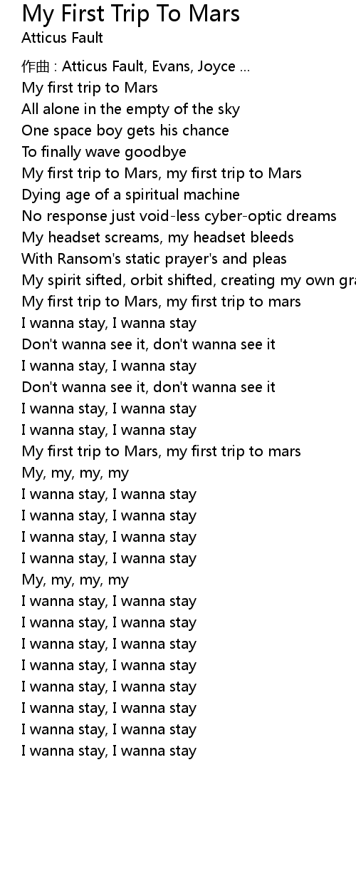| 歌曲 | My First Trip To Mars |