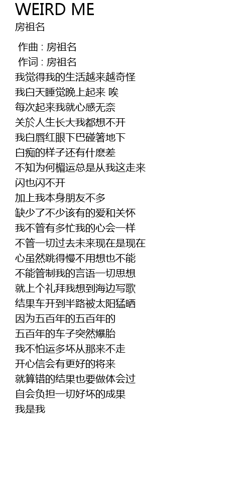 | [00:01.00] | 作词 : 房祖名 |
