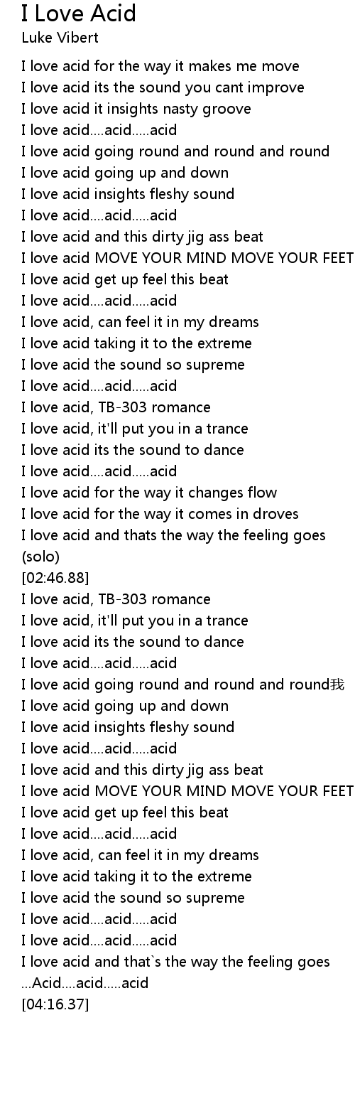 | [04:08.94] | I love acid and that s the way the feeling goes |