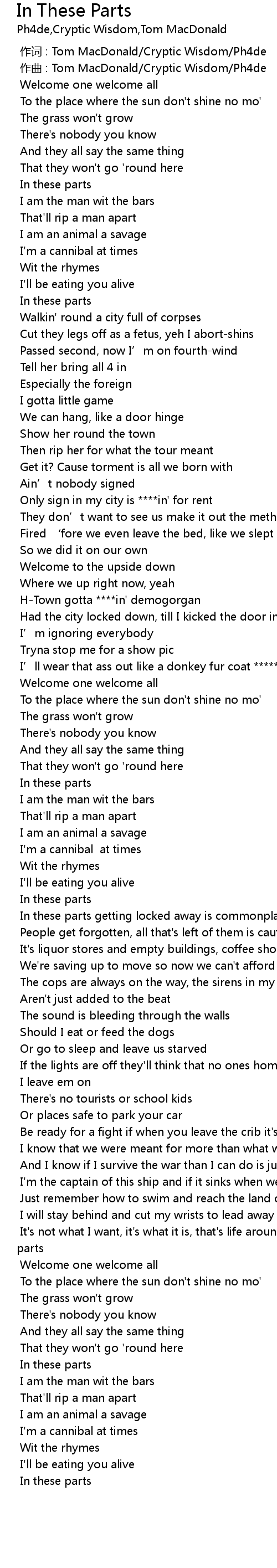| [00:00.000] | zuo ci : Tom MacDonald Cryptic Wisdom Ph4de |