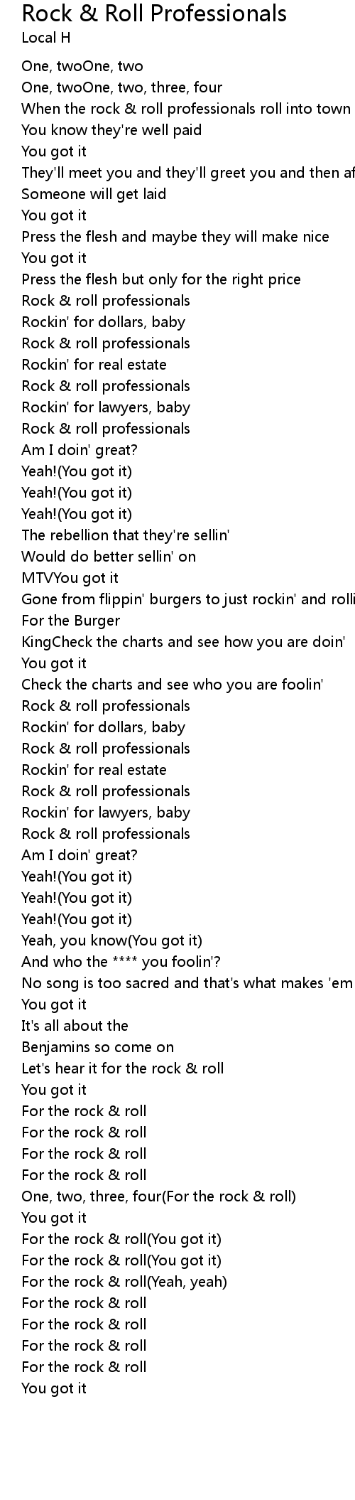 Rock & Roll Professionals 歌词