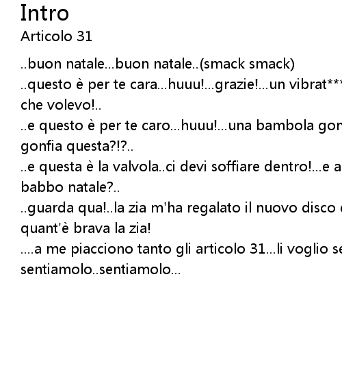| ....a me piacciono tanto gli articolo 31...li voglio sentire!....va bene sentiamolo..sentiamolo... |